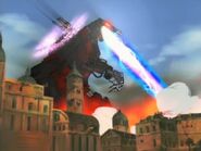 It is later unveiled to the Empire in full during Prozen's coronation ceremony (as he had attempted to assassinate Crown Prince Rudolph, and although unsuccessful, was able to convince the Empire's heads of state that he was indeed deceased, thus usurping the throne), where Prozen unleashed it upon the returning Crown Prince, along with all the forces who had allied with him. The Death Saurer did not stop there, and began to lay waste to the whole Imperial capital. Quickly realizing that Prozen's intentions weren't for the benefit of the Empire, and the utter madness that would ensue by letting the rampaging Zoid go free, the Empire's own forces defected and began attacking it as well.